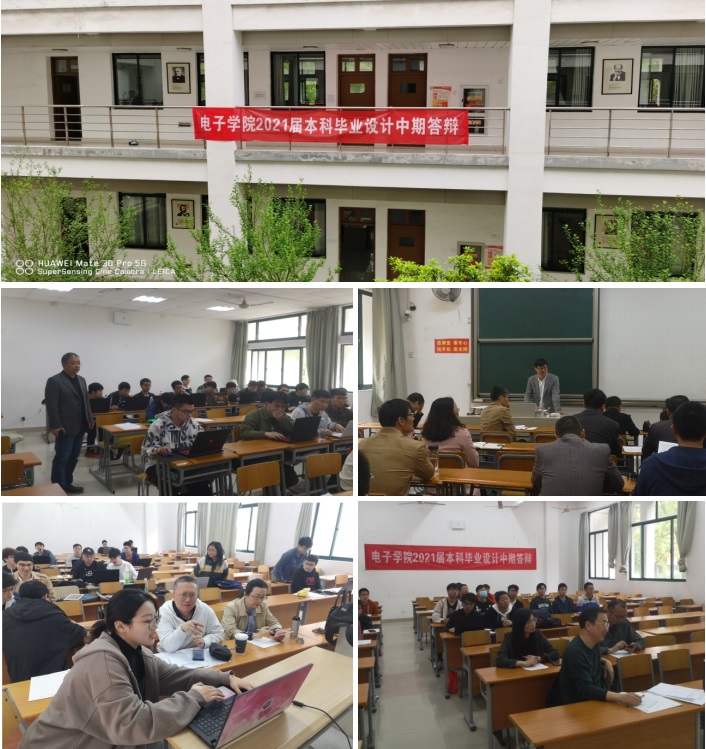 4月24日上午,电子学院在C4组团教学楼集中开展2021届本科毕业设计中期检查, 459名本科毕业生共分成18组汇报了毕业设计开题以来所做的工作、取得的阶段性进展以及下一步工作计划。