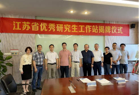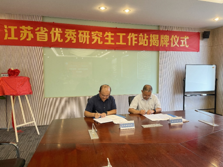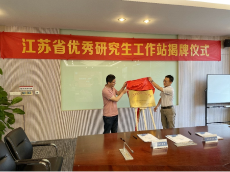 研究生部副主任孙国华与国贸酝领公司副总经理顾永青为“江苏省优秀研究生工作站”揭牌。