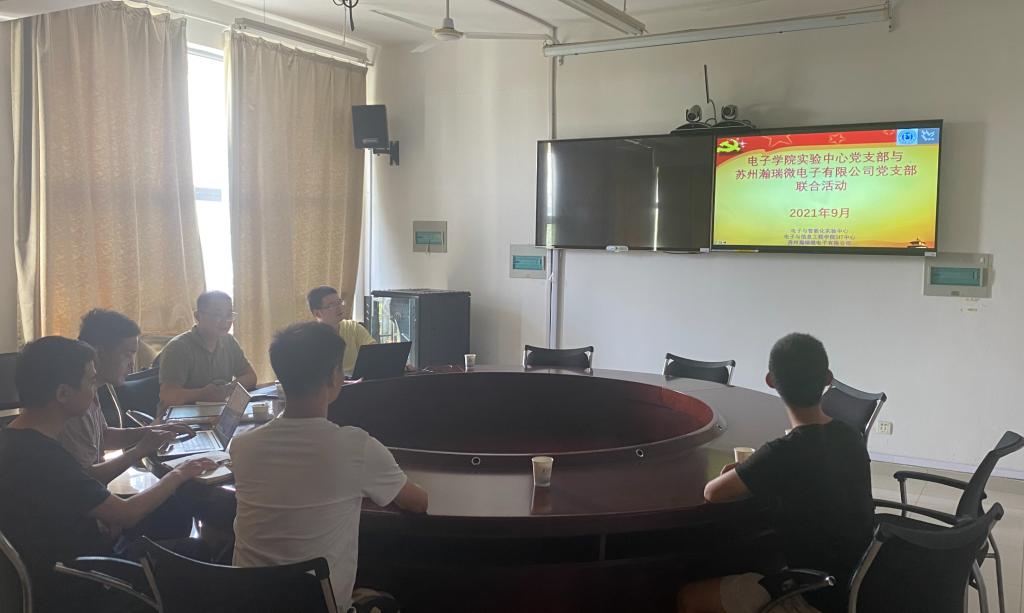 2021年9月24日下午,电子学院实验中心党支部与苏州瀚瑞微电子有限公司党支部举办联合活动,实验中心党支部教师党员,电子学院SIT中心优秀学生党员,苏州瀚瑞微电子有限公司党支部党员参加此次会议,会议由支部书记潘欣裕主持。