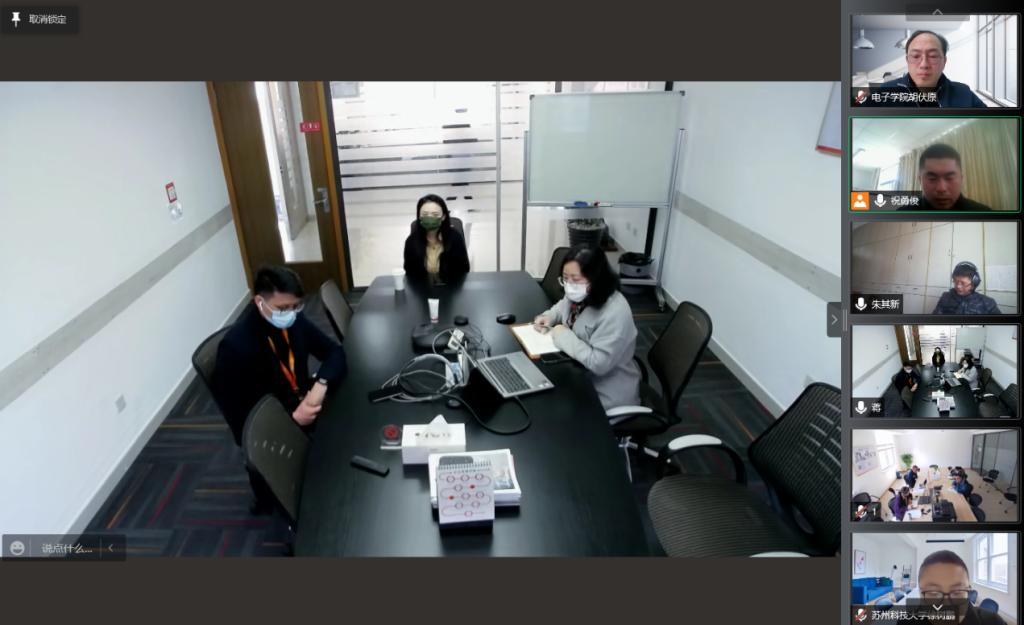 2022年3月8日下午,电子学院组织并联合机械学院召开了“苏科大-亿力机电智能装备研究院”建设线上推进会。浙江省嘉善县科技局科技大市场主任钟元斌、浙江亿力机电股份有限公司副总经理黄佳倩、监事会主席林美莲、技术部门总监马匡龙、人事部门主管蒋才英以及技术部门主管郭海波等受邀参加了会议。电子学院院长胡伏原、机械学院院长朱其新、科技处科长徐树鹏、电子学院院长助理夏振平、电子学院副教授凌云参加了会议。苏州市张家港高新区创新发展部副部长祝勇俊主持会议。