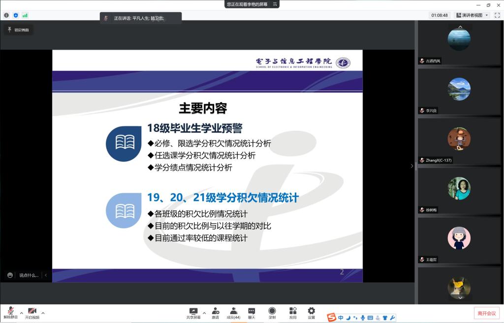 本次研讨会通过对2018-2021级学生的学业数据分析,重点在于发现问题,探讨解决方法,通过持续优化教学质量的闭环反馈机制,促进学院本科教学质量的进一步提升,助力学生长效高质量培养。
