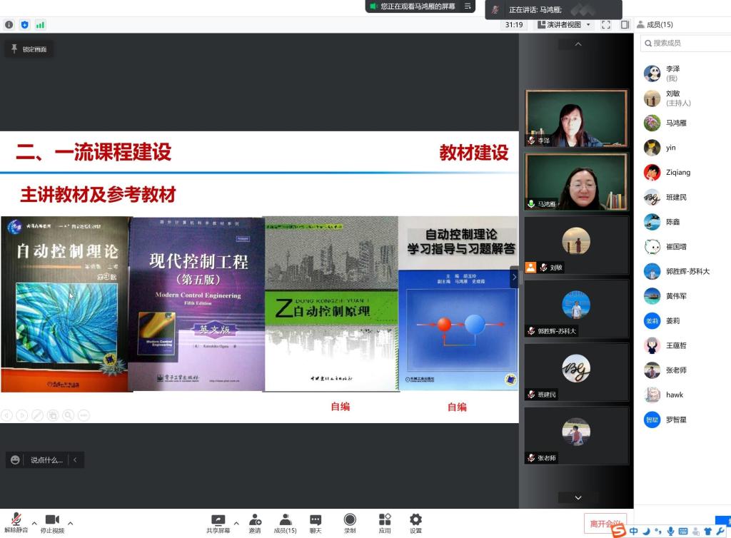 为推进国家一流课程和省一流课程的立项与建设工作, 4月13日下午2点williamhill英国在线召开了一流课程指导建设研讨会。会议邀请北京建筑大学电气与信息工程学院副院长、首批国家一流课程《自动控制原理》课程负责人马鸿雁教授,与首批国家一流虚拟仿真实验《绿色建筑设计与节能性能评价》项目团队骨干、西安建筑科技大学罗智星副教授做了在线讲座,并为学院今年计划申报一流课程的相关老师做线上指导。院长胡伏原、副院长李泽、教务办、课程负责人、各系骨干教师参加了会议,会议由副院长李泽主持。