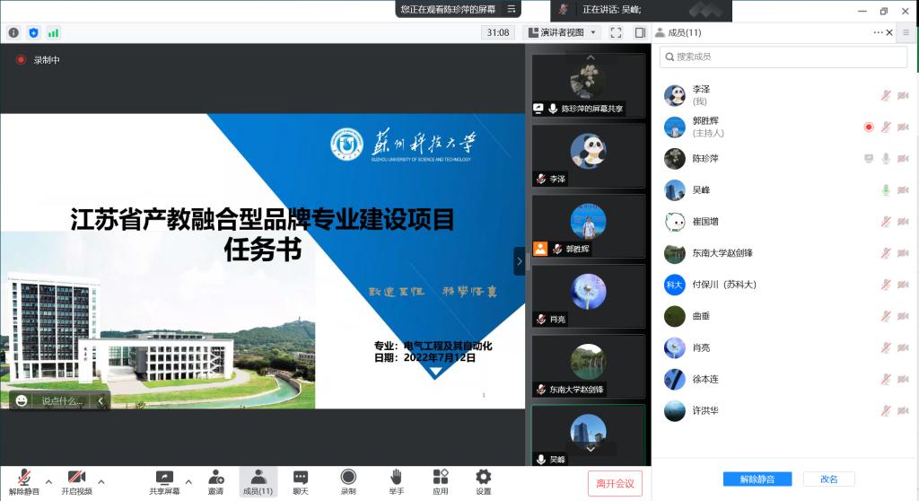 电气专业负责人陈珍萍教授作为项目负责人,介绍了专业发展历程,详细汇报了专业建设目标和举措,对项目预期建设成果进行了阐述。各位与会专家认真听取了陈珍萍教授的报告,高度评价了任务书的建设内容与目标,针对不同的内容模块,各自提出了有益的意见与建议。李泽副院长对各位专家的指导表示了感谢,并表示将认真研究理解各位专家的宝贵意见,完成任务书的修改与完善。