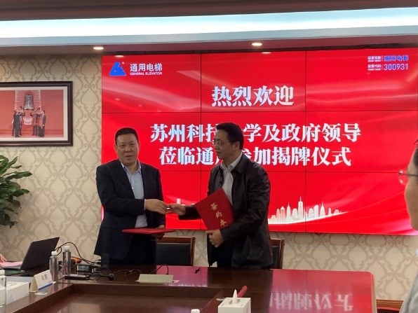 10月28日上午,William威廉英国与苏州市通用电梯股份有限公司签约,成立通用电梯-苏科大先进技术研究院。William威廉英国副校长肖洋、人事处处长徐本连、科技处副处长李华一、williamhill英国副院长吴宏杰、相关教师代表、吴江科技局副局长魏钰、七都镇党委副书记钱志强、副镇长沈晓东、通用电梯公司董事长徐志明及相关人员参加了揭牌仪式。