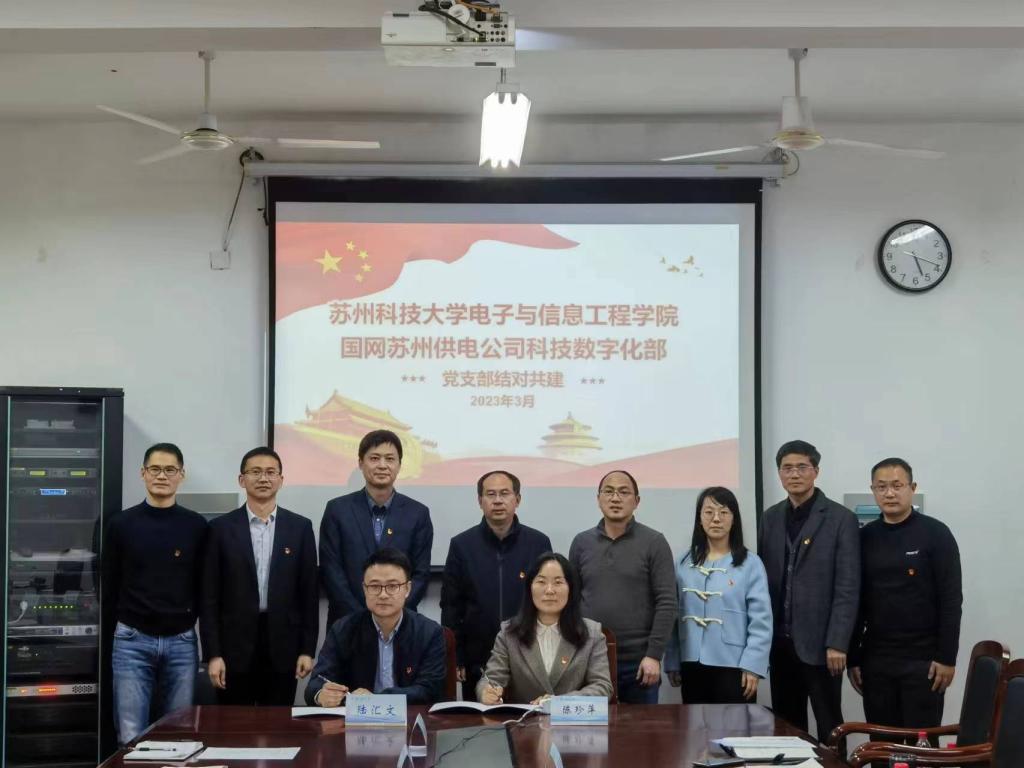 3月8日下午,电子学院电气教师党支部与国网苏州供电公司科技数字化部党支部在电子楼A-303举办了“结对共建”签约仪式。电子学院党政领导班子、电气系教师代表、国网苏州供电公司科技数字化部主任钱科军、党支部书记兼副主任陆汇文等17人出席,仪式由电子学院党委书记张兄武主持。
