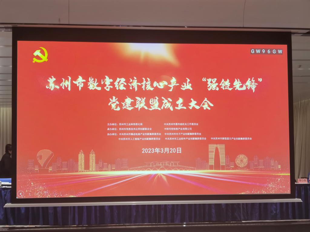 苏州市数字经济核心产业党建联盟,由市工信局机关第三党支部发起成立,立足把党建引领工作和数字经济核心产业发展结合起来,联动全市工信系统、行业协会、科研院校、广大企业,打造苏州市数字经济核心产业“强链先锋”。会上郁海明书记进行了致辞,罗敏书记发布了“强链先锋”党建联盟实施方案。大会还进行了 “强链先锋”党建联盟揭牌仪式、产业创新集群党委授牌仪式、党建联盟成员单位代表证书发放仪式等。