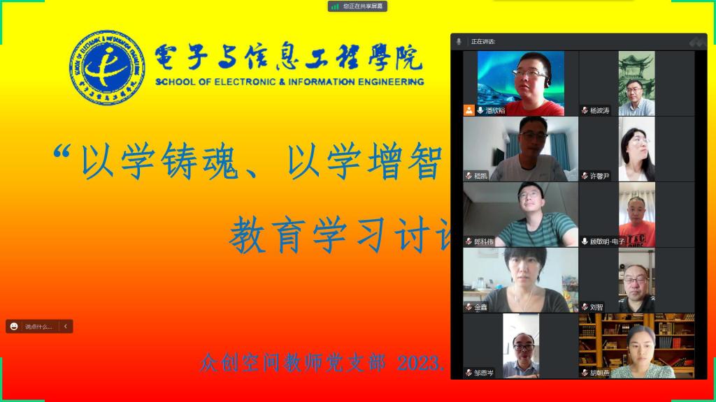 7月21日上午,电子学院众创空间教工党支部全体党员开展了“以学铸魂、以学增智、以学正风”的主题教育学习及交流研讨,会议由支部书记潘欣裕主持,学院党委副书记杨波涛出席并作重要发言。