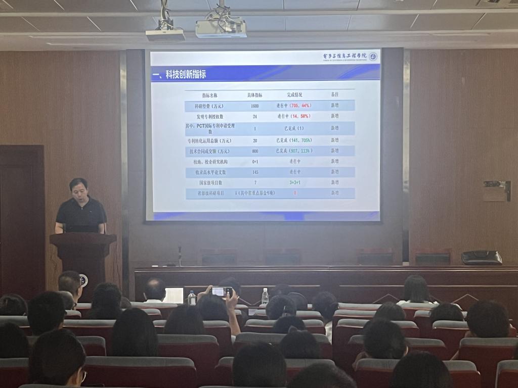 学院副书记兼副院长杨波涛就新生入学、学生情况分析和目标完成情况进行说明;学院副院长吴宏杰就科研工作存在的问题、研究生管理方面工作,年度目标完成情况和分析进行了汇报;学院副院长李泽在说明教学方面前期存在的主要问题的基础上,给出了解决方案和后续的重点工作推进计划,同时汇报了上半年教学工作目标完成情况和当前正在进行的主要工作。