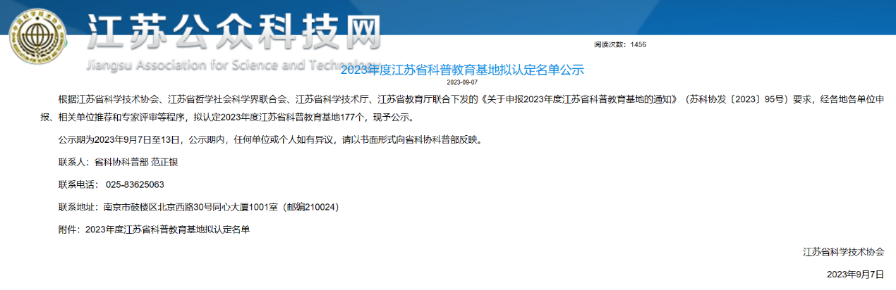 近日,江苏省科学技术协会下发了《关于申报2023年度江苏省科普教育基地的通知》,我校williamhill英国申报的“苏科智慧城市科普教育基地”成功获批。江苏省科普教育基地评比是由省科协、省社科联、省科技厅、省教育厅联合开展的。
