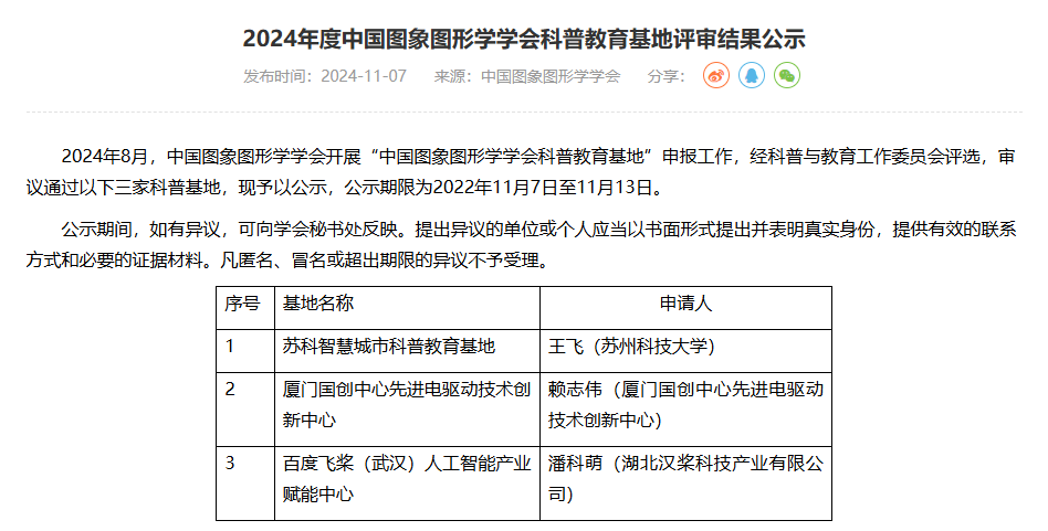 近日,中国图象图形学学会发布《关于开展2024年“中国图象图形学学会科普教育基地”申报工作的通知》,我校williamhill英国申报的“中国图象图形学学会科普教育基地”成功获批。