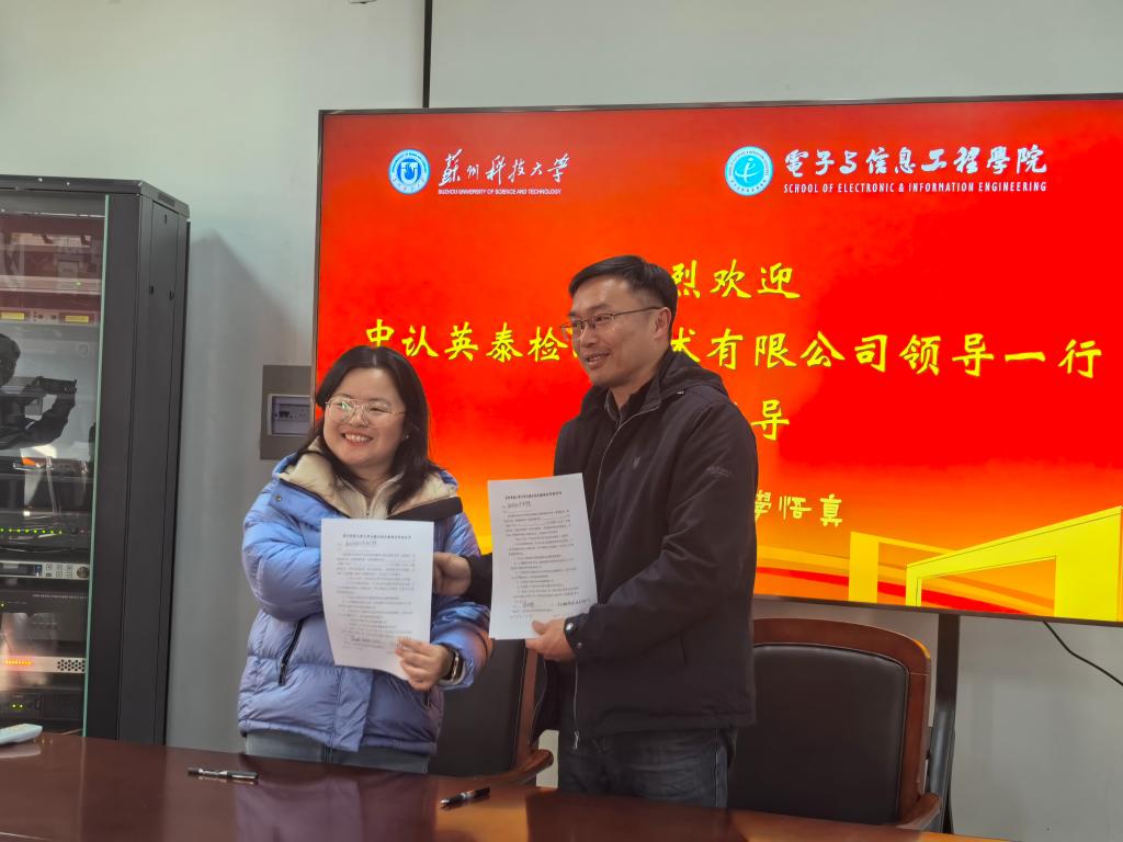 为进一步加强校企合作,1月13日下午,电子学院与中认英泰检测技术有限公司在电子楼A303举行了就业创业基地合作协议签约仪式。电子学院党委副书记杨波涛、学生处处长助理吴方意、中认英泰检测技术有限公司项目一部副部长顾勤芬、测试部副部长张新光、人力资源部招聘经理袁园出席本次活动。活动由学生处处长助理吴方意主持。