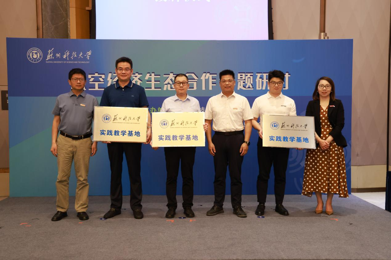 会议现场举行了低空经济产教融合生态圈共建协议签约仪式。我校分别与苏州市人工智能行业协会、苏州市测绘学会签署合作协议。同时,我校为六家优秀企业颁发了“大学生校外实践教学基地”铜牌,包括苏州低空科技有限公司、嗨森无人机科技有限公司、汇龙航空(苏州)有限公司、苏州中科天启遥感技术有限公司、东融低空经济产业发展有限公司以及园测信息科技股份有限公司。