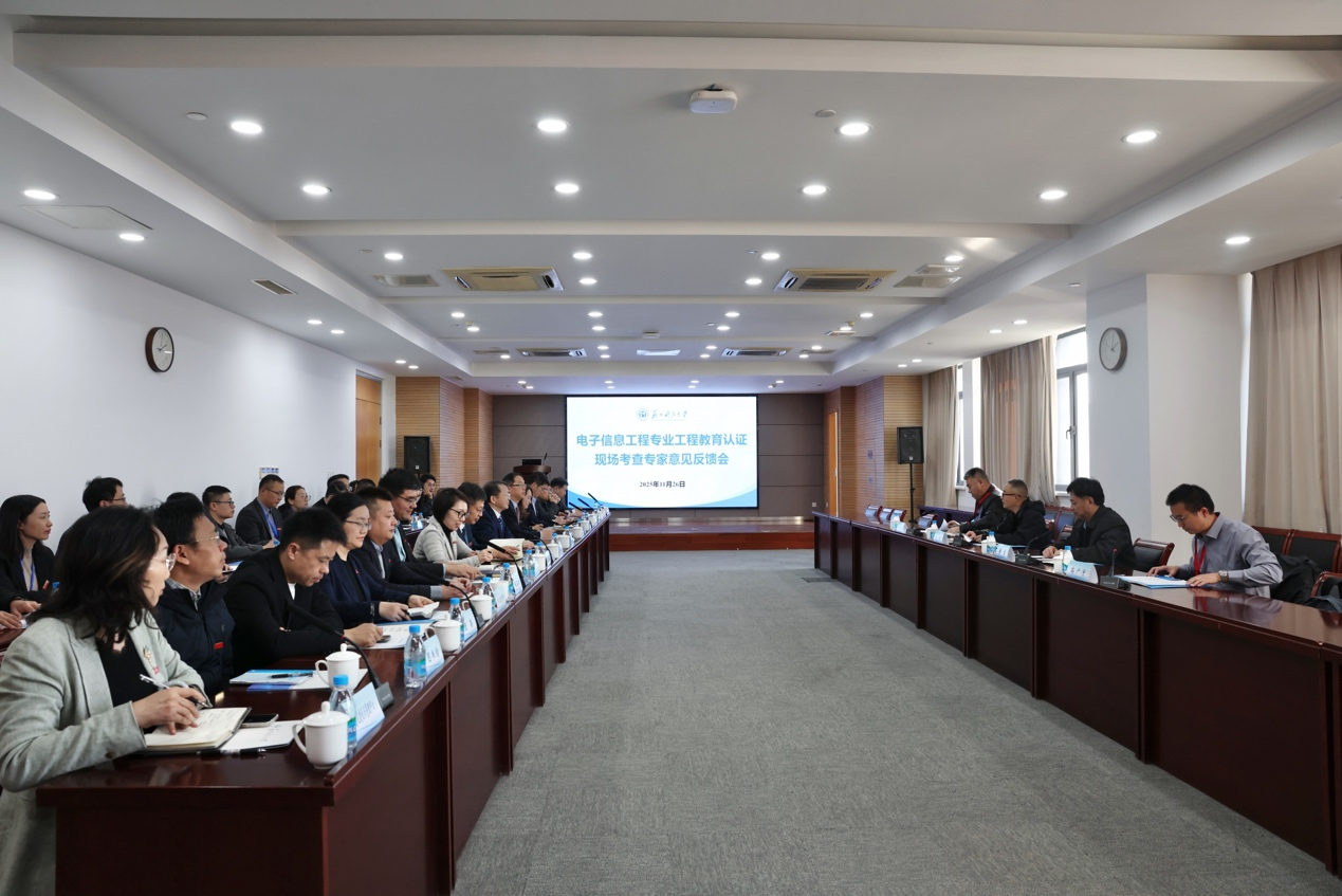 2025年11月25日至26日,根据教育部教育质量评估中心的安排,以湘潭大学段斌教授为组长,重庆邮电大学唐宏教授、天津泽邦科技发展有限公司李胜总经理为成员,北京理工大学高广宇副教授为秘书的工程教育认证专家组一行四人进驻我校,对电子信息工程专业进行了为期两天的现场考查工作。此次考查工作推进顺利,并圆满结束。