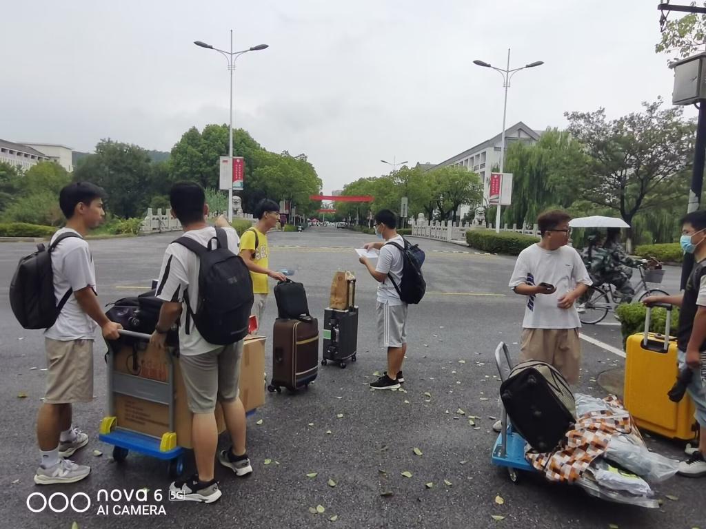 迎新当天,志愿者在辅导员的指导下,顺利完成可以返校新生的报到手续,同时向新生发放校园一卡通和宿舍钥匙,并主动帮助新生们把行李送至宿舍。迎新现场秩序井然。