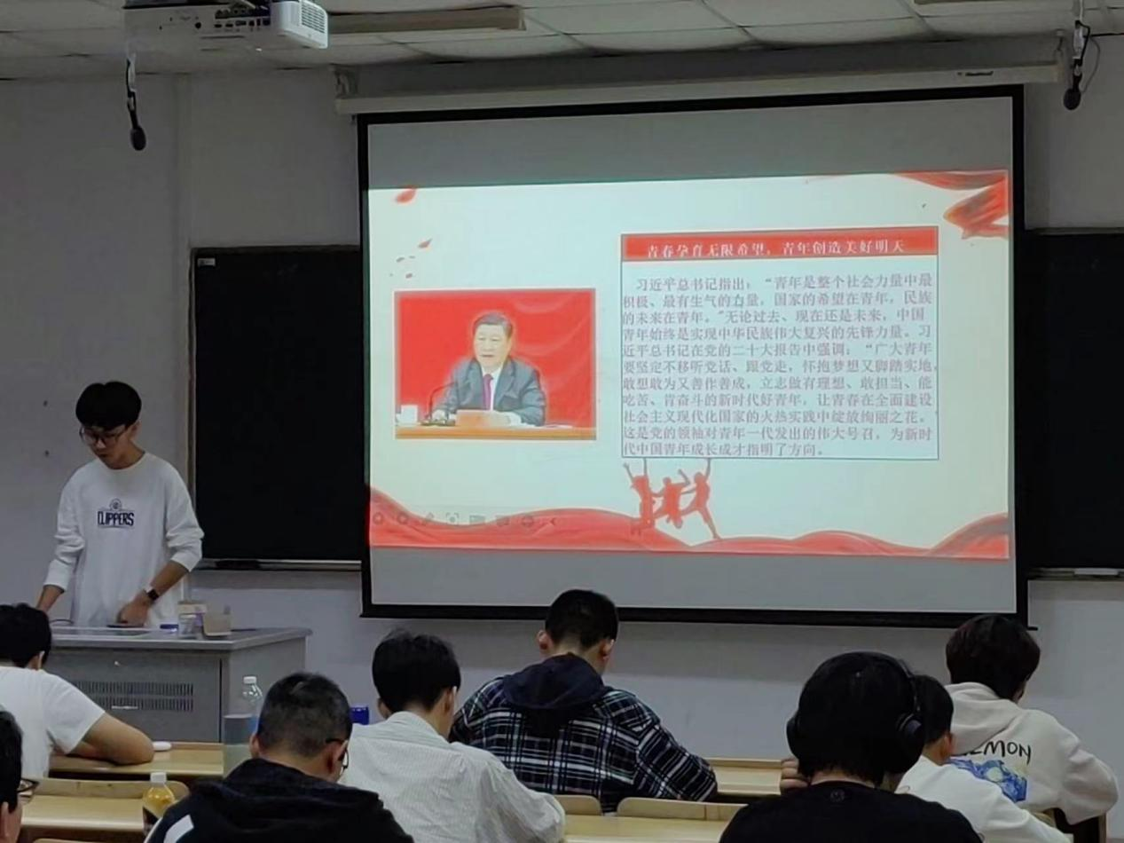 在班会上,班长团支书通过图文、视频资料等方式,带领同学们研学了主题内容,指出青年们需要树牢理想信念,全面提升素养,矢志艰苦奋斗,发扬斗争精神,练就过硬本领。随后,同学们围绕相关主题展开讨论,大家一致认为,要坚定不移听党话、跟党走,牢记领袖嘱托,勇担时代责任,为实现中华民族伟大复兴不懈奋斗。
