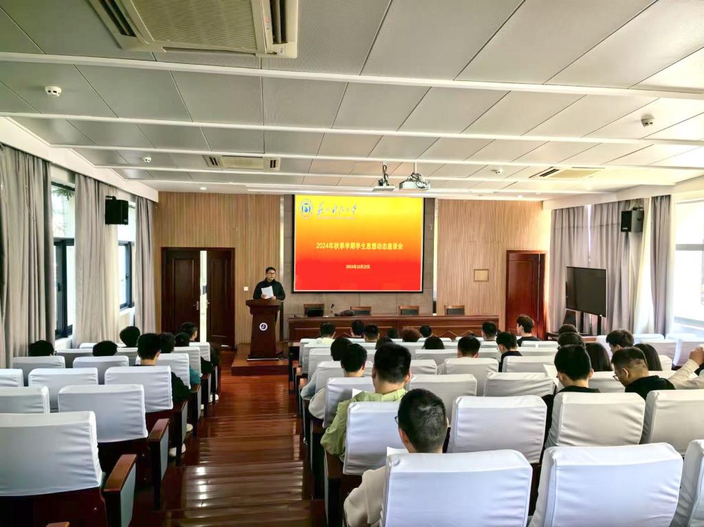 2024年秋季学期,为了深入了解和掌握学生的思想动态,加强师生之间的沟通与交流,辅导员戴世宇、耿天宇、胡思宇、孙铭、江雯哲、苏馨、汤恒涛、梁德强、黄珊等老师联合举办了学生思想动态座谈会。本次座谈会旨在为学生提供一个表达意见和分享感受的平台,同时帮助老师们更好地指导学生,促进其全面发展。
