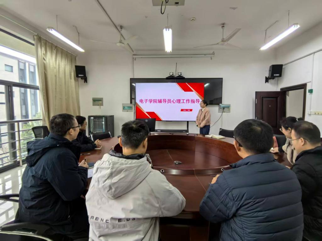为深入落实立德树人根本任务,全面提升辅导员队伍心理健康教育专业化水平,筑牢学生心理健康安全防线,3月17日,电子学院学工办于电子楼三楼会议室精心组织辅导员技能培训——心理工作指导专场活动。学院全体专兼职辅导员全程参与,培训由辅导员孙铭主持。