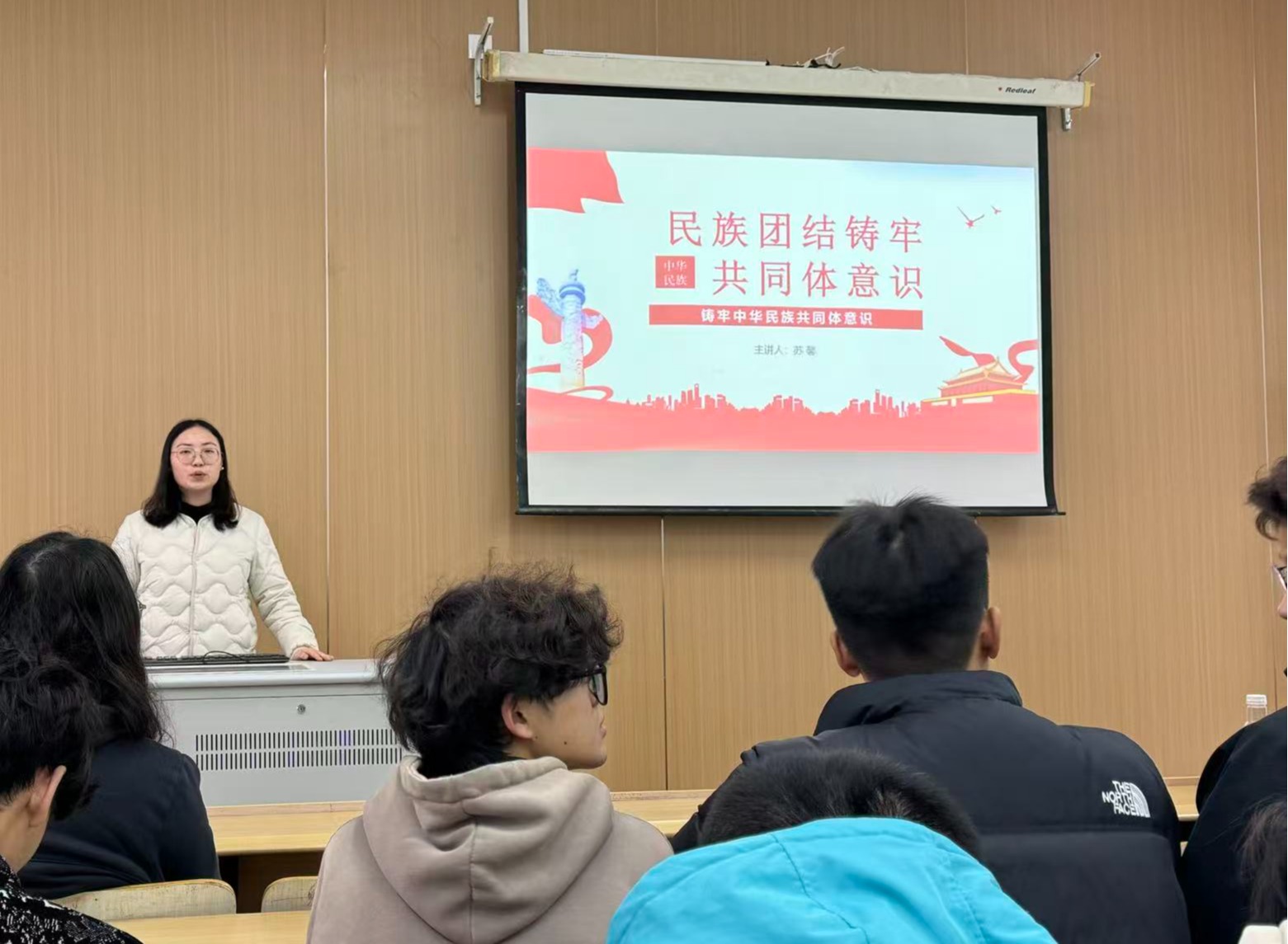 班会上,各辅导员围绕主题,结合我国各民族交往交流交融的历史脉络与生动实践,系统阐释了铸牢中华民族共同体意识的重大意义、历史渊源与时代内涵。他们强调,中华民族共同体意识是维护国家统一、促进民族团结、凝聚复兴伟力的思想根基,号召同学们从日常学习生活做起,相互尊重、加强交流、互帮互助,自觉做民族团结进步的维护者和践行者。讲解内容贴近学生实际,注重引导同学们思考如何在校园生活中具体落实民族团结理念,得到了学生的广泛关注与积极响应。