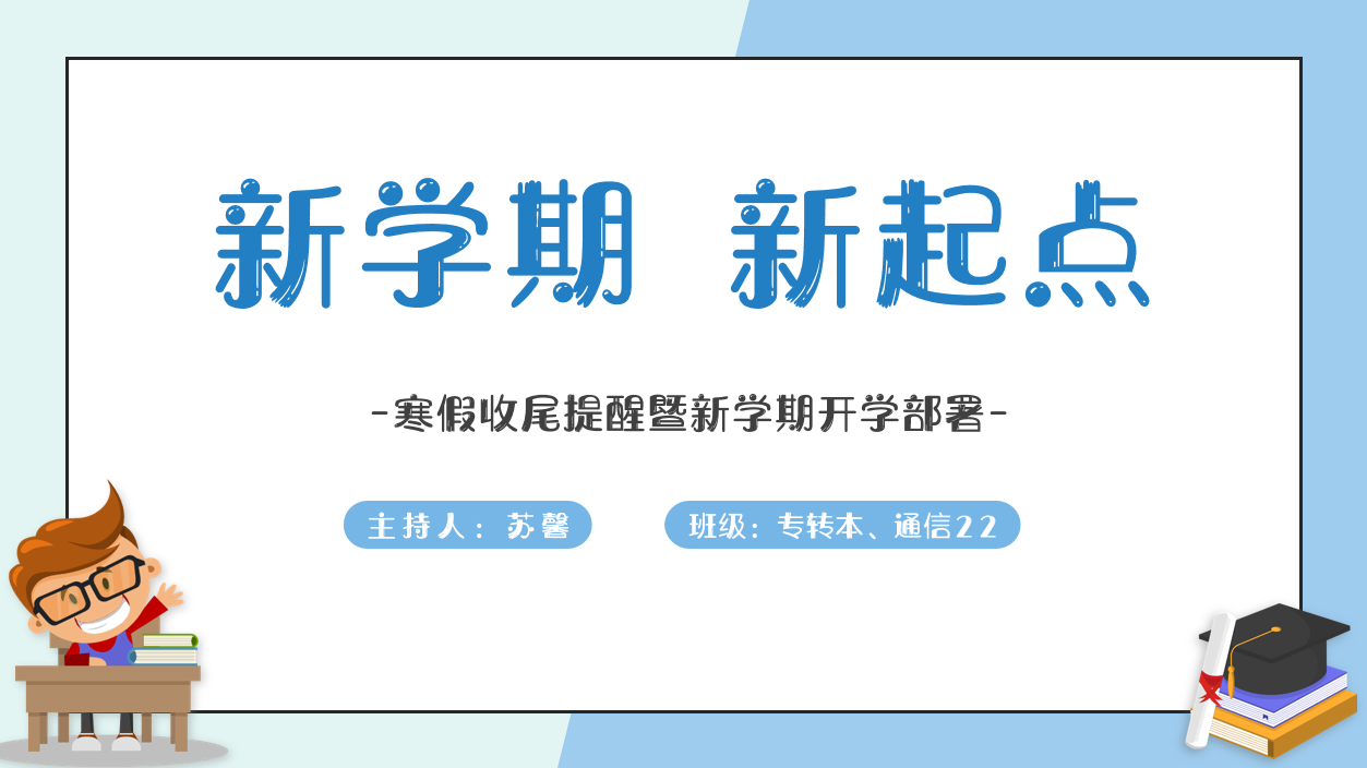 为进一步强化寒假期间学生学业管理,统筹做好新学期开学筹备工作,切实保障学生顺利返校、安心复学,2025年2月10日,电子学院辅导员苏馨通过腾讯会议,组织所带班级学生召开“寒假收尾提醒暨新学期开学部署”主题班会。