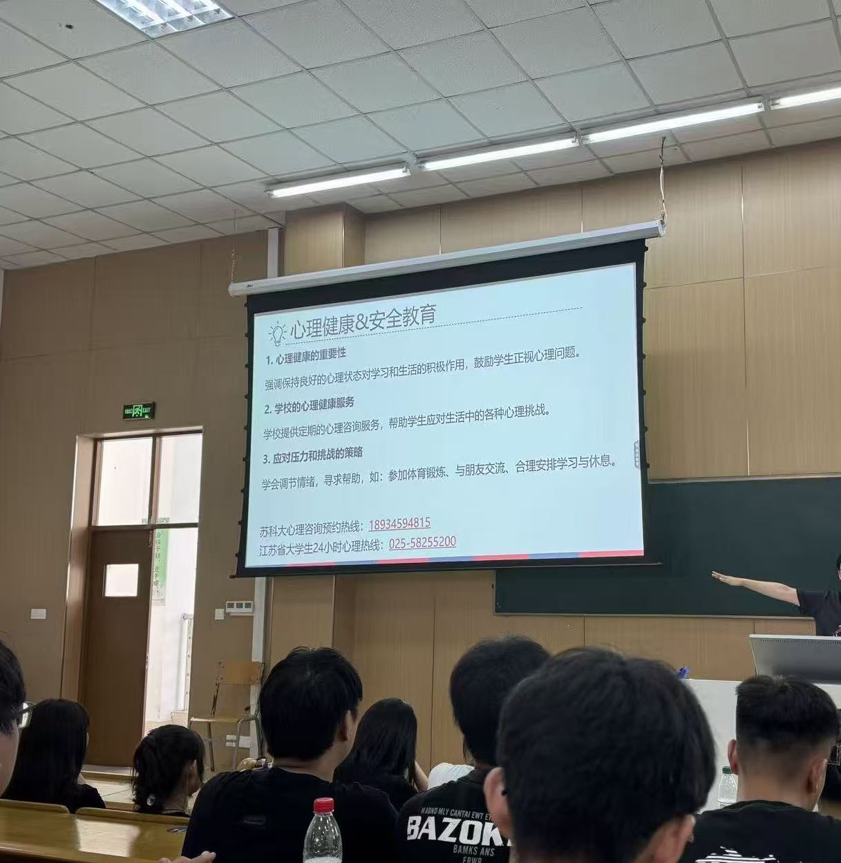 此外,苏馨详细介绍了学校的心理支持资源,明确告知学生学校心理健康中心的咨询电话、预约方式、24小时心理援助热线及线上咨询平台等信息,强调心理健康教育中心的专业老师会为大家提供免费、保密的心理服务。同时,她表示,自己也会随时关注同学们的心理状态,欢迎大家主动沟通交流,班级将建立“心理委员+宿舍长”的关怀联动机制,及时发现并协助解决同学的心理困扰,共同筑牢班级心理防护网。