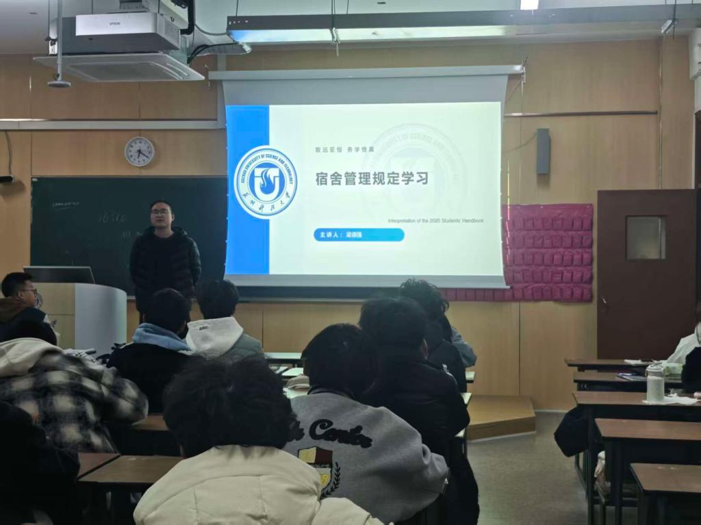 学习过程中,各班级通过主题班会、线上分享、案例研讨等多种形式,对《规定》进行了全面细致的解读。辅导员重点围绕宿舍安全管理、卫生整洁标准、作息时间要求、公共设施使用、违规行为处理等核心内容展开讲解,结合近年来校园内发生的宿舍安全案例,深入剖析了违规使用大功率电器、私拉乱接电线、晚归不归等行为的潜在风险与严重后果,让学生深刻认识到遵守宿舍管理规定的重要性。同时,针对学生提出的宿舍用电安全、物品存放、室友相处等常见问题,辅导员逐一进行解答,现场互动氛围热烈。