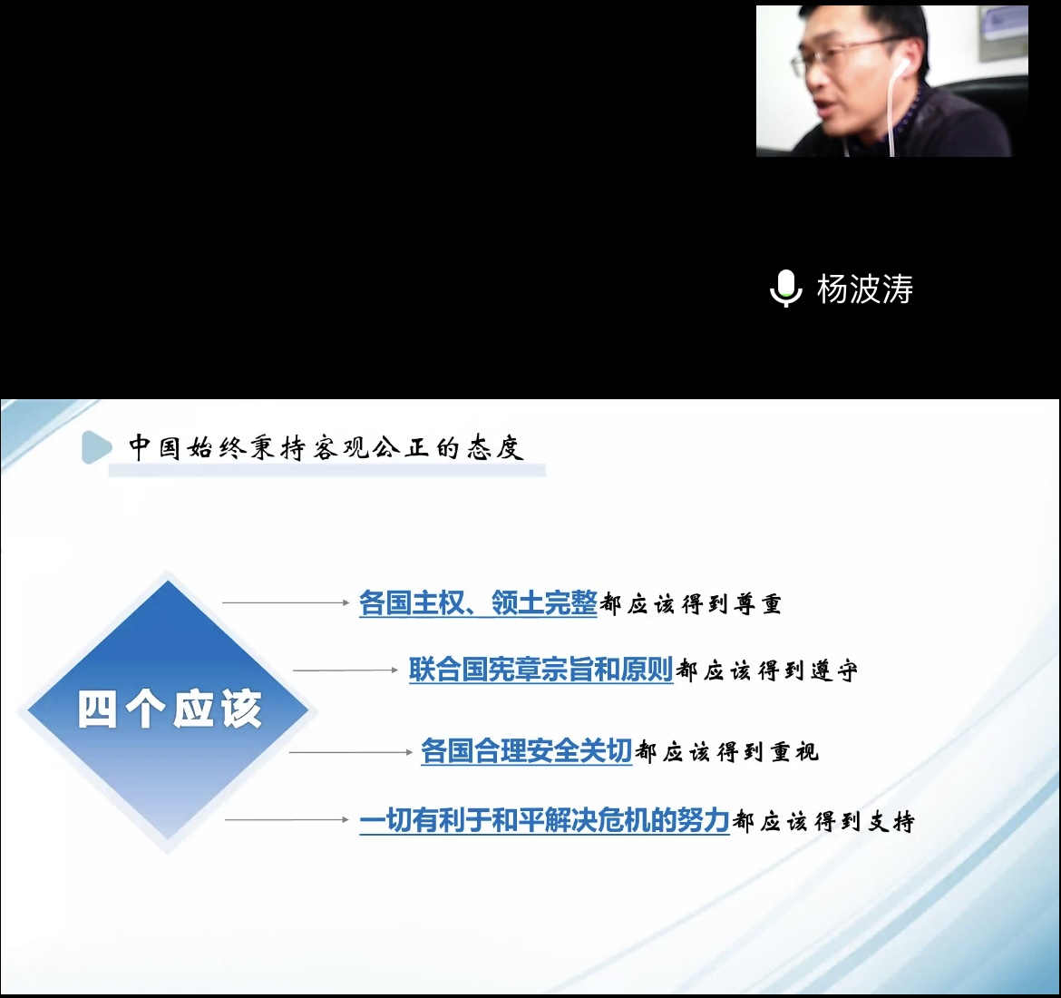 杨波涛书记以“乌克兰危机演变及影响”为主题,从复杂的历史经纬、激烈的多维较量、广泛的国际影响和坚定的中国立场四个方面进行讲解。他强调,无论国际风云如何变幻,中国始终站在历史正确的一边,站在和平合作和公道正义的一边,站在人类进步的一边。