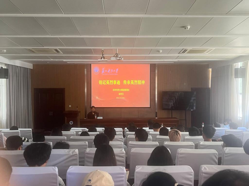 为扎实开展党纪学习教育,传承红色基因,发扬红色精神,5月29日,电子学院邀请苏州市烈士陵园管理处进行了“铭记英烈事迹,传承英烈精神”党纪学习教育主题宣讲,院党委书记章鸣、苏州市烈士陵园管理处主任杨一渠、院全体党委委员、教师党支部书记和部分学生参加活动。
