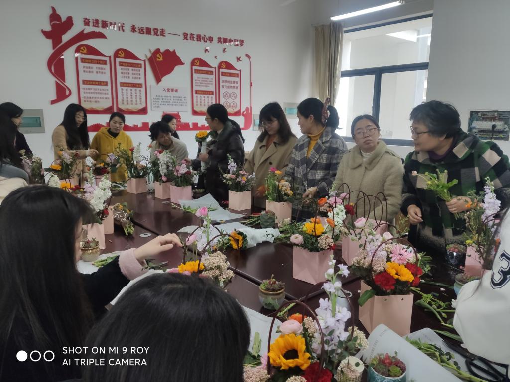 为丰富女教职工精神文化生活,庆祝“三八”国际妇女节,3月17日,电子信息与工程学院组织开展艺术插花体验活动。