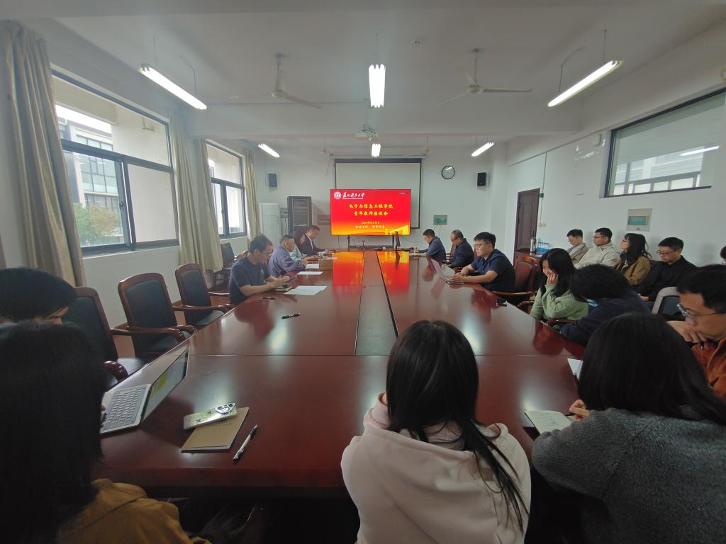 近日,电子学院青年教师座谈会在学院A303会议室举行,学院原电子系老领导仲嘉霖受邀返院,与青年教师代表围绕教学科研、职业成长等议题深入交流。学院领导班子成员及青年教师参加座谈。