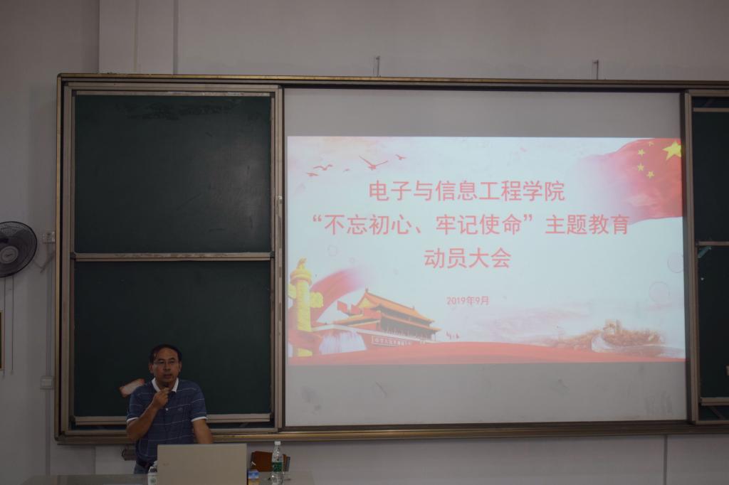 9月25日中午,电子学院党委在C5-202召开“不忘初心、牢记使命”主题教育动员大会。学院全体党员参加会议,会议由学院副书记兼副院长杨波涛主持。