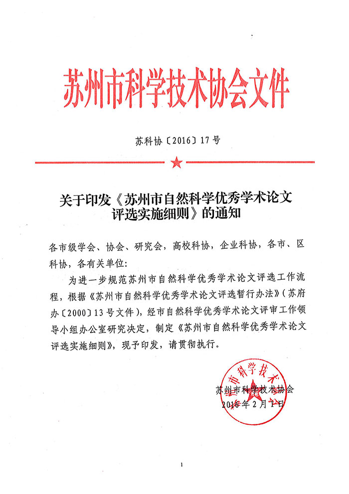 苏州市优秀论文评选实施细则通知
