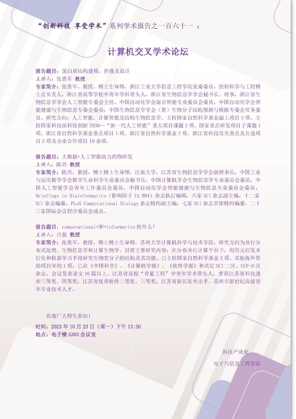 “创新科技 享受学术”系列学术报告之一百六十一-计算机交叉学术论坛