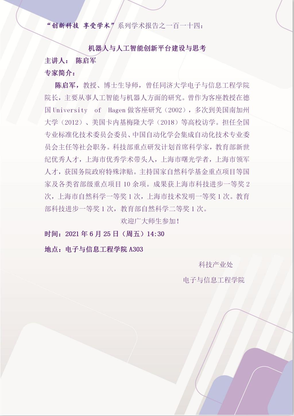 学术报告:机器人与人工智能创新平台建设与思考