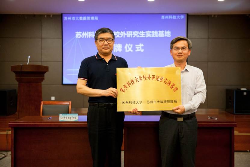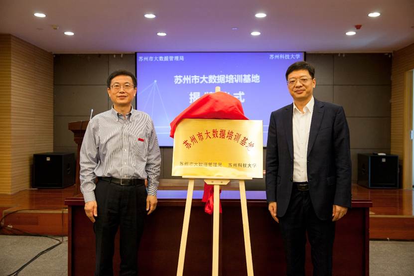 苏州市政府秘书长顾建明与William威廉英国副校长吴健荣作为双方代表,进行了“苏州市大数据培训基地”揭牌仪式。