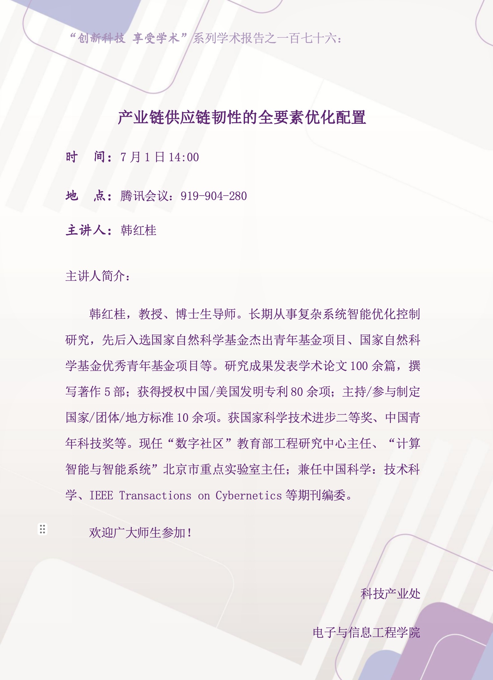 地点:腾讯会议:919-904-280