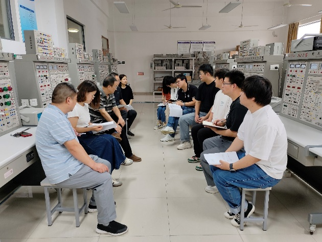 现场观摩之前,任课教师刘传洋简要介绍了课程的基本建设情况,团队成员及企业工程师就课程内容、教学方法、考核评价方式等方面各抒己见,交流各自的教学心得与反思。教务处副处长、教研组负责人孙云飞分享了学校关于产教融合型课程建设和管理的相关意见,建议课程要进一步凝练产教融合特色,将面向实际应用和提高学生实际动手能力进一步融入到整个课程教学过程。