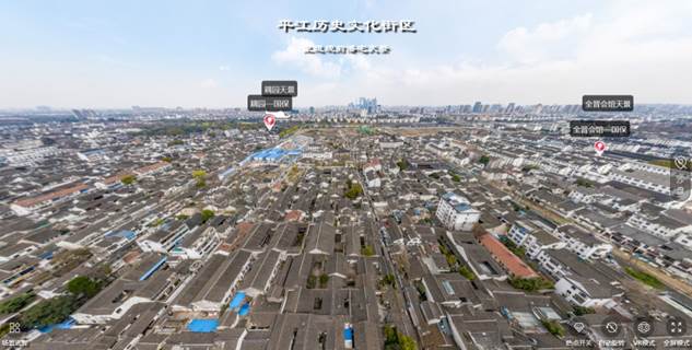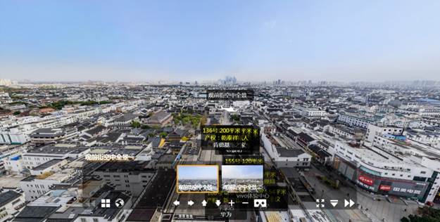 虚拟现实是一种可以创建和体验虚拟世界的计算机仿真技术,带给大众一种身临其境的体验。为了能够更好的展示古城风采,与姑苏区发改委、姑苏区区政府分别对观前街、平江历史文化街区进行三维全景展示,成为姑苏区“古城保护和管理大数据中心项目(一期)”组成部分。浏览者可以清晰的看到观前街的沿街商铺情况,平江历史文化街区的历史文化古迹分布,借助VR眼镜能够栩栩如生的体验姑苏古城风景。